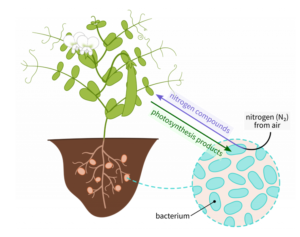 - A well-known example is Rhizobium bacteria, that reside in the root nodules of leguminous plants.